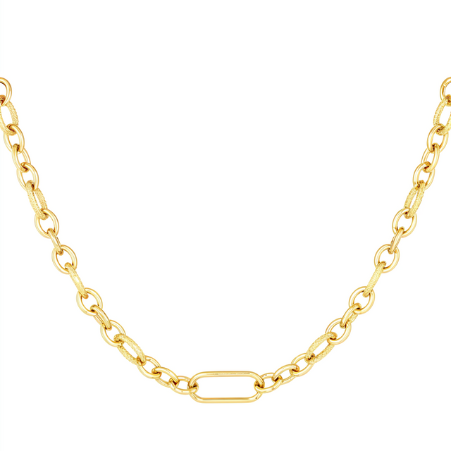 The Diamond necklace is inspired by the brilliance and captivating structure of a diamond, featuring textured links that catch the light from every angle.